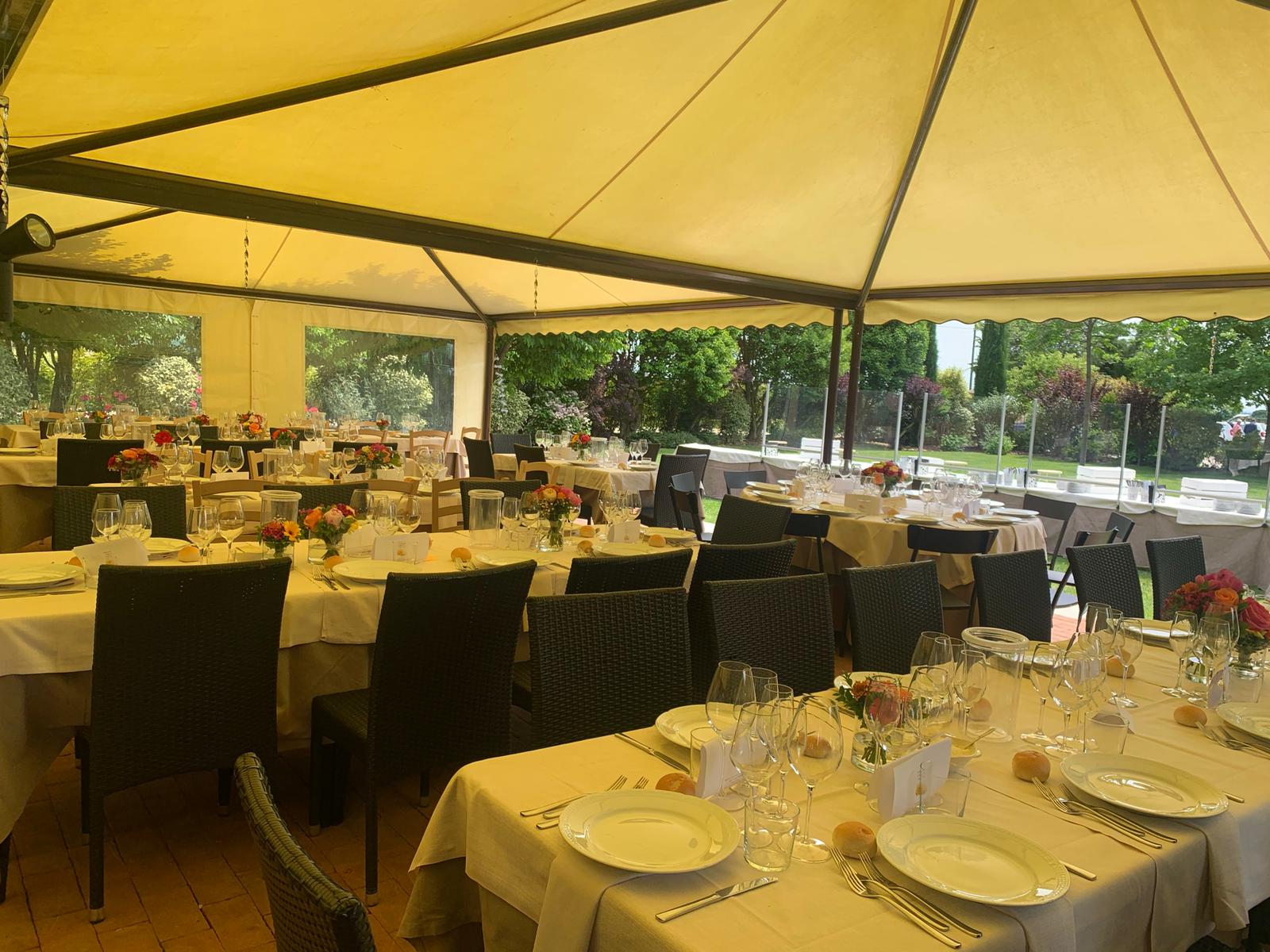 Gli ambienti del ristorante, caratterizzati da sale eleganti e spazi immersi nel verde, si adattano a ogni esigenza, offrendo la possibilità di organizzare ricevimenti intimi o feste più numerose, sempre con la massima cura dei dettagli.